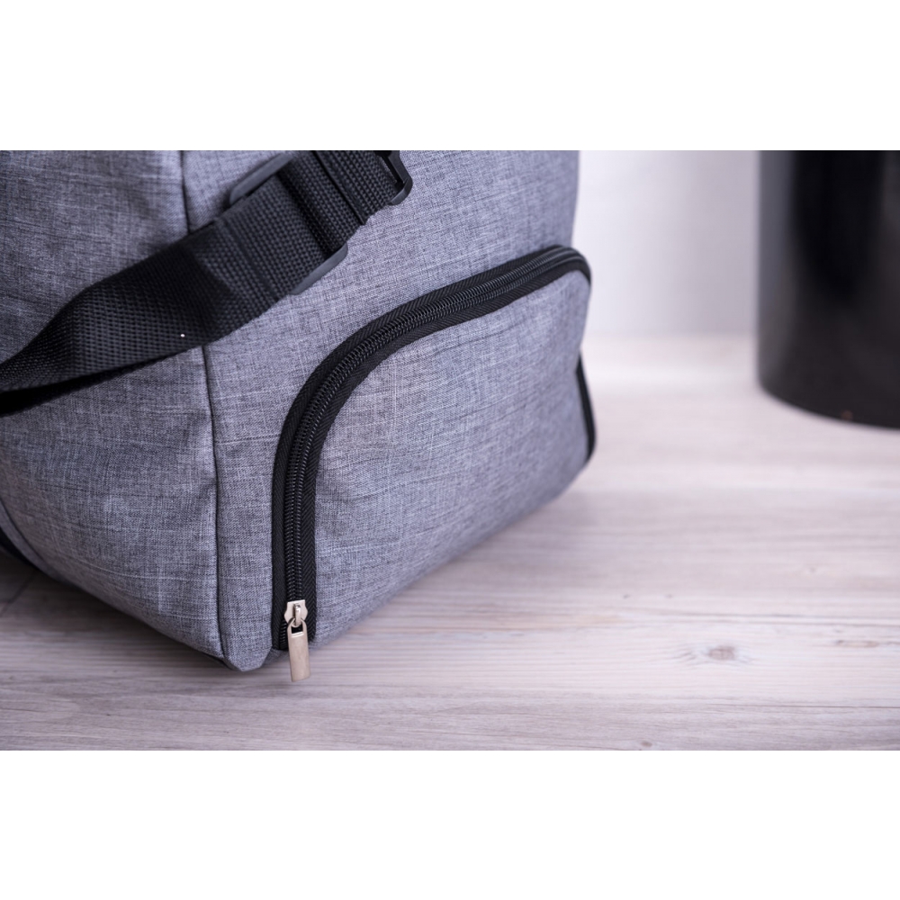Artikel-Nr: AND721085-77Sporttasche mit Reißverschluss und Tragergriff. Mit eingebautem USB-Verbindungstück für Powerbanks. Material: 600D Polyester.
