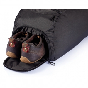 Artikel-Nr: XND703731600D Ripstop, Fronttasche mit Organizer und Reißverschluss, Seiten- und Schuhfach, gummierte Tragegriffe sowie ein Schultergurt, und mit 4 Füßen an der Bodenseite. PVC-frei.