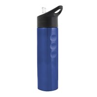 Edelstahl-Flasche mit vertieftem Ausgießer und Strohhalm für einfachen Trinkgenuß.