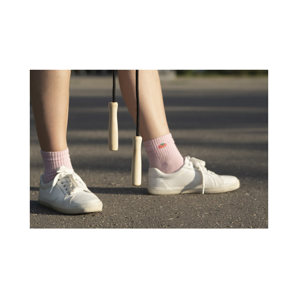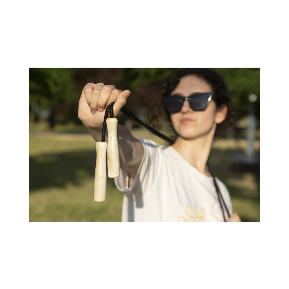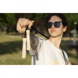 Artikel-Nr: ARD20509-02Das Springseil ist eines der Geräte, an denen das Interesse nicht abnimmt. Springen kann als Aufwärmtraining, als Hauptbestandteil des Trainings und auch zum Spaß verwendet werden. Es ist ein ideales Produkt sowohl für Erwachsene als auch für Kinder. Das Springseil hat Holzgriffe und das Seil ist aus Polyester. Abmessungen: 2,10 m (Springseil); 119 mm x 25 mm (Griff)
