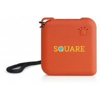 Artikel-Nr: A232CM51375V/500 mA Viereckige trendy 2000 mAh Powerbank mit Gummi-Coating. Mit Trageband für einfaches Mitnehmen und Ladekabel.