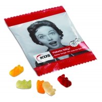 Artikel-Nr: 4287005-4-tStandard Gummiformen in weißer oder transparenter Folie rundum bedruckt, ca,10g Fruchtgummi in Standardformen, Standard in verschiedenen Farben und Geschmacksrichtungen, Lieferzeit ca, 6 Wochen nach Freigabe, Haltbarkeit 12 Monate inkl. 1-farbiger Druck, zzgl. Drucknebenkosten