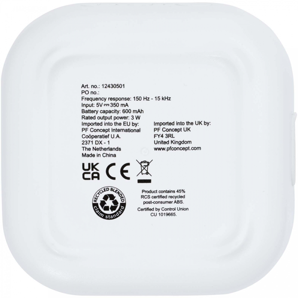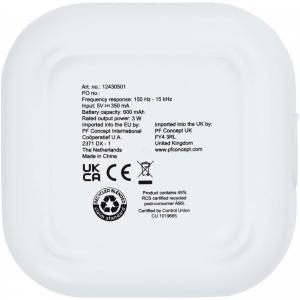 Artikel-Nr: CPO12430501RCS-recycelter 3W Bluetooth® Lautsprecher, der Musik, Podcasts usw. von jedem Bluetooth® fähigen Gerät abspielt und damit ein idealer Begleiter für jede Gelegenheit ist. Der Lautsprecher verfügt über eine integrierte Musiksteuerung und ein Mikrofon für Telefonate und Online-Meetings. Genießen Sie 3 bis 4 Stunden Musik bei maximaler Lautstärke. Die Ladezeit beträgt 3 Stunden. Bluetooth® 5.3 mit einer Reichweite von ca. 10 Metern. Wird mit einem Benutzerhandbuch und einem 30 cm langen USB-A-auf-Typ-C-Ladekabel geliefert und in ist einer Box aus 100 % recyceltem Karton aus nachhaltigen Quellen verpackt.