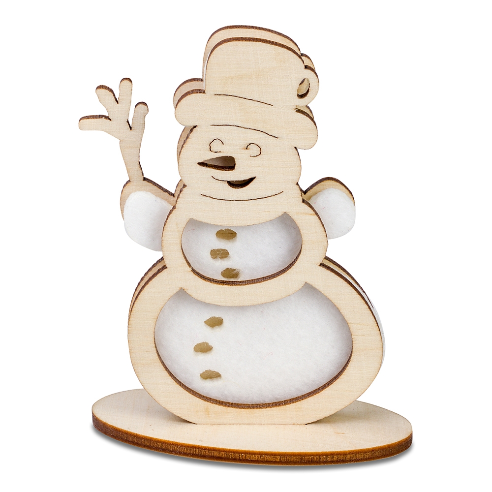 Artikel-Nr: HOP21.31894.0ADie beliebten Holz-Filz Steckfiguren gibt es auch in einer Premium-Ausführung. Die dreilagigen Holz-Filz-Holz-Kombinationen, in den Versionen Tannenbaum, Engel und Schneemann, werden mit einem Holzfuß geliefert. So kann die weihnachtliche Steckfigur dekorativ aufgestellt werden oder den Adventskranz und Tannenbaum schmücken. Geliefert wird dieses hochwertige Schmuckstück flach auf einer Karte, die individuell mit Grußbotschaft und Logo (ein- oder beidseitig) bedruckt werden kann – ideal für die Grüße an Kunden zu Weihnachten. DIN lang Umschläge sind optional möglich.