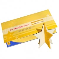 Artikel-Nr: 4012331700Zusammen basteln: Im Inneren der Karte liegen plano die Teile der jeweiligen Figur, die mit einfachen Handgriffen zusammengesteckt werden. Die Figuren bestehen aus Holz und Filz und sind als Elch, Baum, Stern, Engel, Nikolaus und Schaukelpferd erhältlich. Die Karte kann komplett individuell gestaltet werden (ein- oder beidseitig), oder Sie greifen auf die Standardgestaltung zurück. Größe: 10,5 x 21 cm, aufgeklappt 21 x 29,7 cm