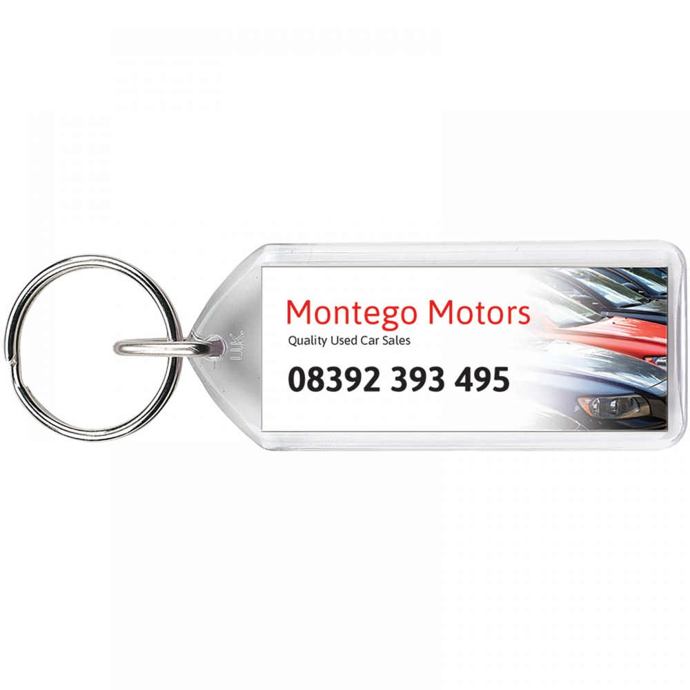 Artikel-Nr: CPO21056200Transparenter, rechteckiger F1-Schlüsselanhänger mit metallenem Schlüsselring. Dieser Schlüsselanhänger kann mit einer Münze wieder geöffnet werden. Der Metallring bietet ein flaches Profil, das sich ideal für Mailings eignet. Abmessungen der Druckeinlage: 5,0 cm x 2,0 cm.