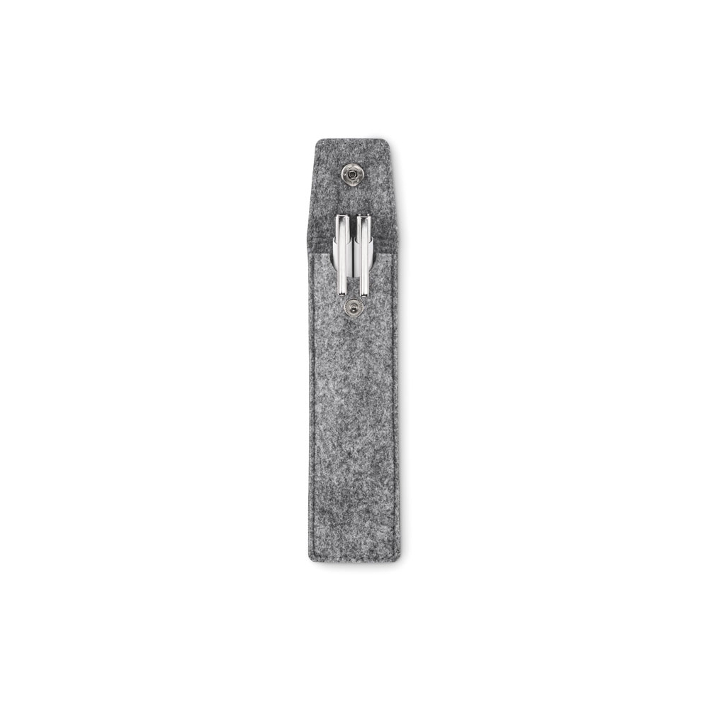 Artikel-Nr: OCBMO2473-07Stifte-Etui aus RPET-Filz mit Platz für 2 Stifte. Druckknopfverschluss.