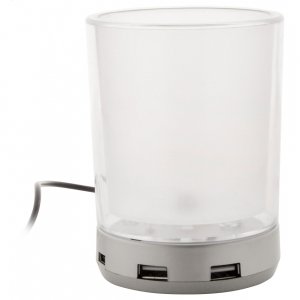Artikel-Nr: AND809353Schtifteköcher aus ABS-Kunststoff mit USB Hub (USB 2.0, 4 Ports) und blauem Licht. Bedruckung erfolgt auf Papiereinleger (zwischen beiden Wänden).