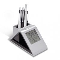 Artikel-Nr: 34251155Alles unter einem Dach: Parkstation für Ihr Mobiltelefon mit Uhr, 12/24-Stundenanzeige, Datum, Wochentag, integriertem Wecker mit neun verschiedenen Alarmtönen, Stiftehalter, Schlummerfunktion, Geburtstagserinnerer und Temperaturangabe. Mit prominenter Werbefläche.