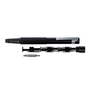 Artikel-Nr: RFS52639-BKPraktisch und handlich – das Bit-Set aus eloxiertem Aluminium beinhaltet 6 Schlitz-Bits und 6 Kreuzschlitz-Bits in unterschiedlichsten Größen inklusive Feinmechanik. Die Bits sind sicher im Inneren des Stifts aufbewahrt. Besonders leicht in der Handhabung sind die magnetischen Bits. Platzieren Sie einfach den gewünschten Bit an der Spitze des Stifts und schon ist der Schraubendreher einsatzbereit. Alle Bits sind aus robustem S2 Stahl. Die Stiftform erleichtert die Benutzung als Werkzeug und durch die geriffelte Oberfläche liegt der Schraubendreher gut in der Hand. Der Clip sorgt für den nötigen Halt an der Kleidung, dem Werkzeugkoffer oder dem Klemmbrett. Mit einer edlen Lasergravur wird das Bit-Set zu einem attraktiven Werbeartikel.