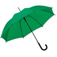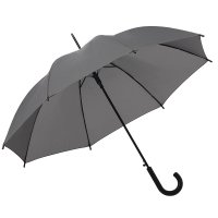 Polyester-Tetoron-Bespannung (190T), Stahlspeichen-Automatikgestell in schwarz, Metall-Stab (10mm) in schwarz, Kunststoff-Rundhakenkrücke und -Speichentips in schwarz.