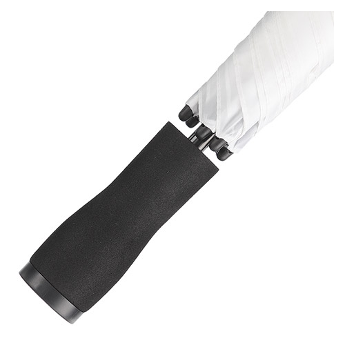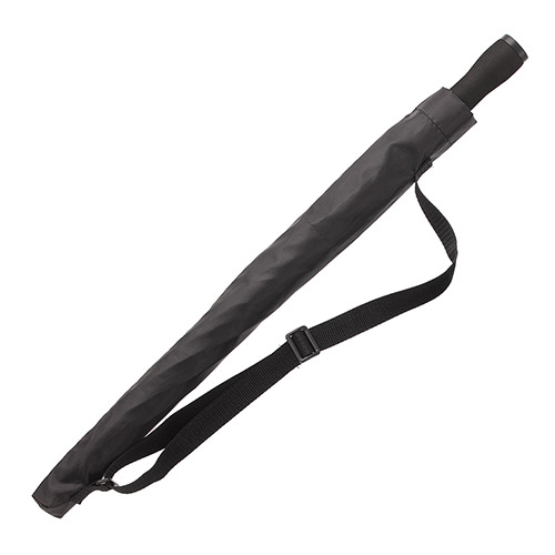 Polyester-Tetoron-Bespannung (190T) und Trageköcher, Glasfiberspeichen-Handöffnergestell in schwarz - WINDPROOF, Metall-Stab (10mm) in schwarz, gerader EVA-Moosgummi-Griff in schwarz, Kunststoff-Speichentips in schwarz.