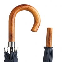 Artikel-Nr: 41543700Polyester-Pongee-Bespannung (190T) (hydrophob imprägniert), Glasfiberspeichen-Automatikgestell in schwarz - WINDPROOF, Metall-Stab (10mm), Echtholz-Rundhakenkrücke und -spitze - geflammt.