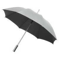 Artikel-Nr: 41542300Polyester-Bespannung (190T) - aussen metallic silber beschichtet / innen schwarz, Glasfiberspeichen-Automatikgestell in schwarz - WINDPROOF, Aluminium-Stab (14mm), gerader Griff im aluminiumfarbenen / schwarzen 'Soft-Touch' Material-Mix, mit integrierter Automatik-Auslösetaste, Metall-Speichentips.