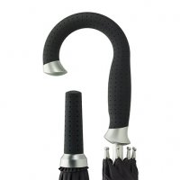 Artikel-Nr: 41542830Polyester-Pongee-Bespannung (190T) (hydrophob imprägniert), Glasfiberspeichen-Handöffnergestell in schwarz - WINDPROOF, mattierter Aluminium-Stab (14mm), exklusiver, gebogener Ergonomie-Rundhaken-Griff - Material-Mix - schwarz gummiert mit aluminium-farbenen Abschlüssen, mit angepasster Stockspitze, aluminium-farbene Speichentips.