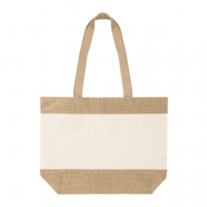 Artikel-Nr: AND722216-00Farbige Strandtasche mit langen Henkeln. Material: Laminierte Jute und laminierte Baumwolle.