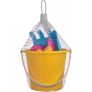 Artikel-Nr: EAG0390mcStrandspielzeug bestehend aus Eimerchen, Sandförmchen, Schaufel und Harke. Ihre Werbung wird per Etikett angebracht.