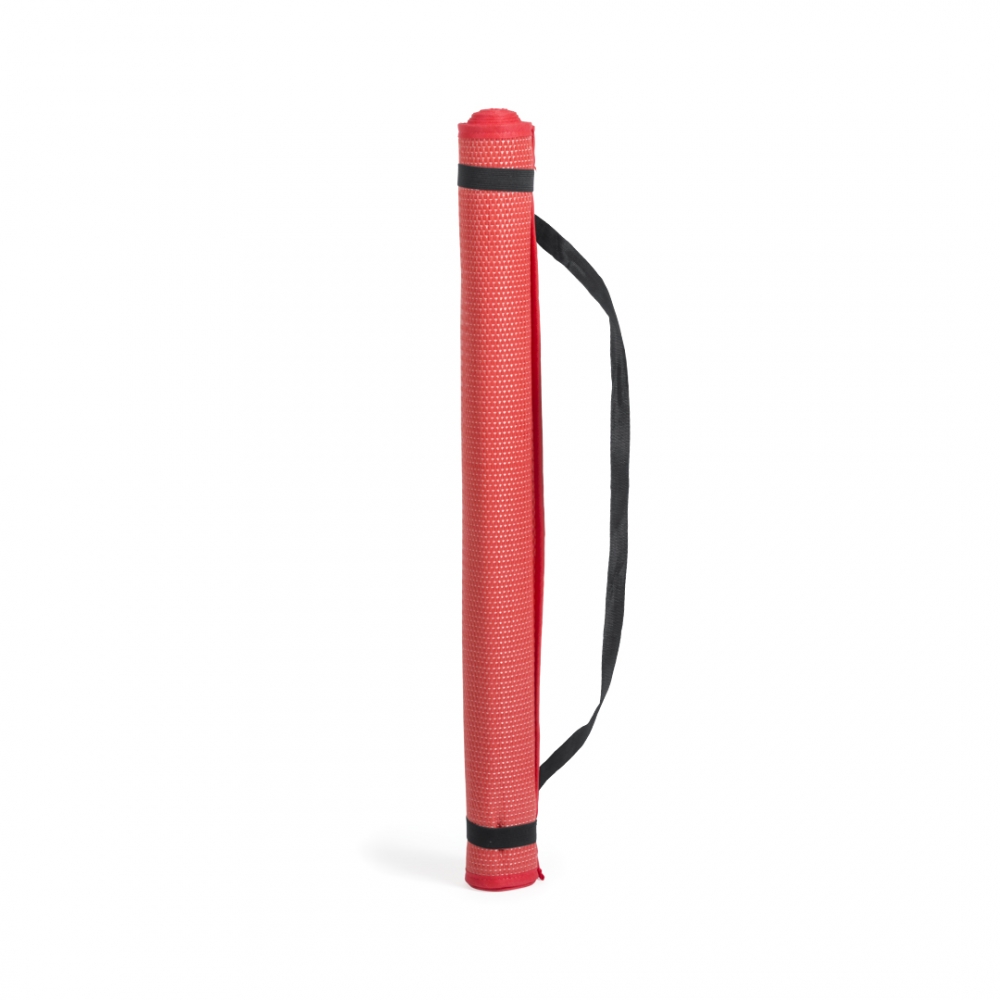 Artikel-Nr: KTO15511003000Maxi-Strandmatte mit den Maßen 180 x 60 cm aus hochresistentem geflochtenem Polypropylen (PP). In verschiedenen lebendigen Farben und glänzender Ausführung. Mit Gummibändern zum Fixieren im aufgerollten Zustand und Schultergurt.