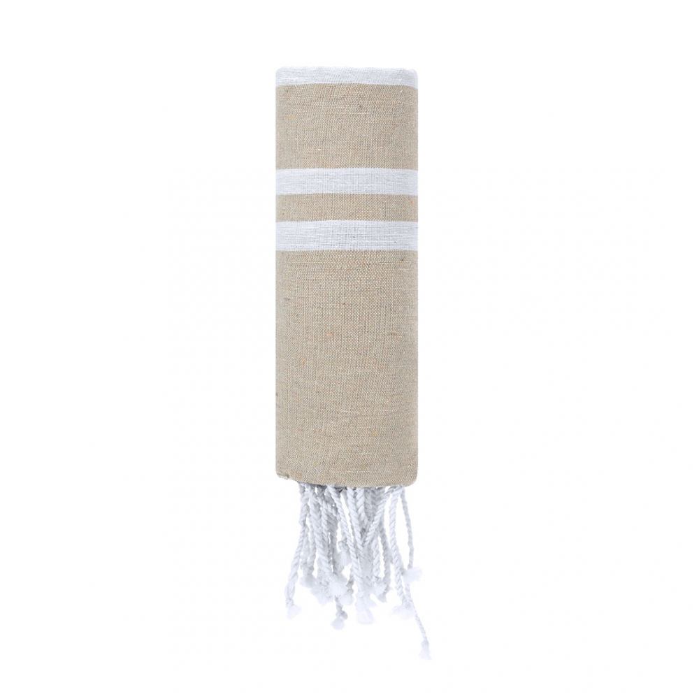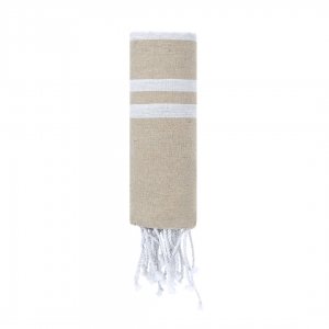 Artikel-Nr: KTO21502013000Weicher Pareo-Handtuch von 150 g / m2 in einer Kombination aus Baumwolle und Polyester. Sein Design hat einen bunten Hintergrund mit weißen Streifen. Enthält Fransen an den Enden, die ein dekoratives Detail hinzufügen und den Abschluss vervollständigen.