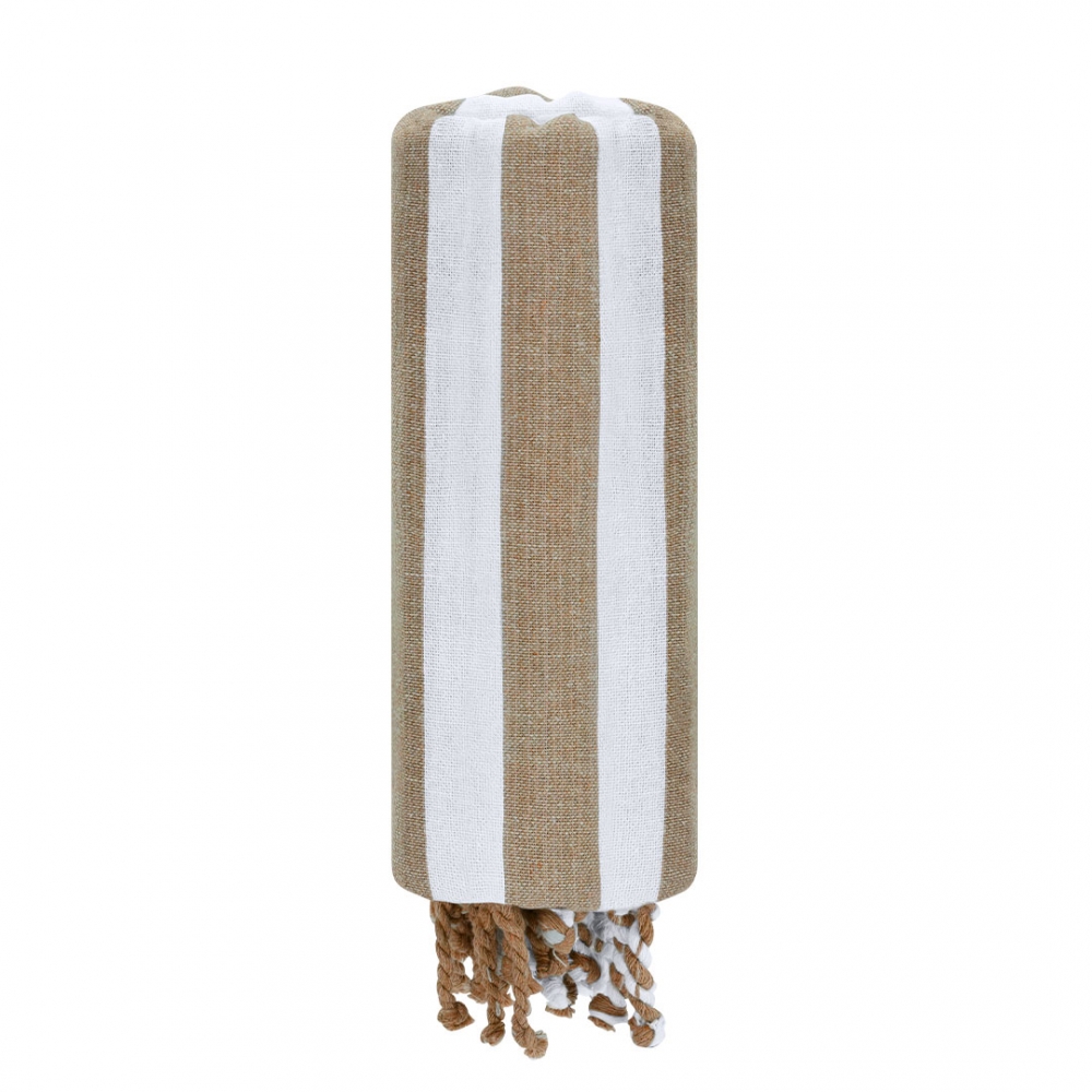 Artikel-Nr: KTO22039013000Weiches 180g / m² Pareo-Handtuch in Kombination aus recycelter Baumwolle und RPET-Polyester. Das Design zeichnet sich durch eine farbige Basis und weiße Streifen aus. An den Enden gibt es Fransen, die ein dekoratives Detail hinzufügen und das Finish vervollständigen.
