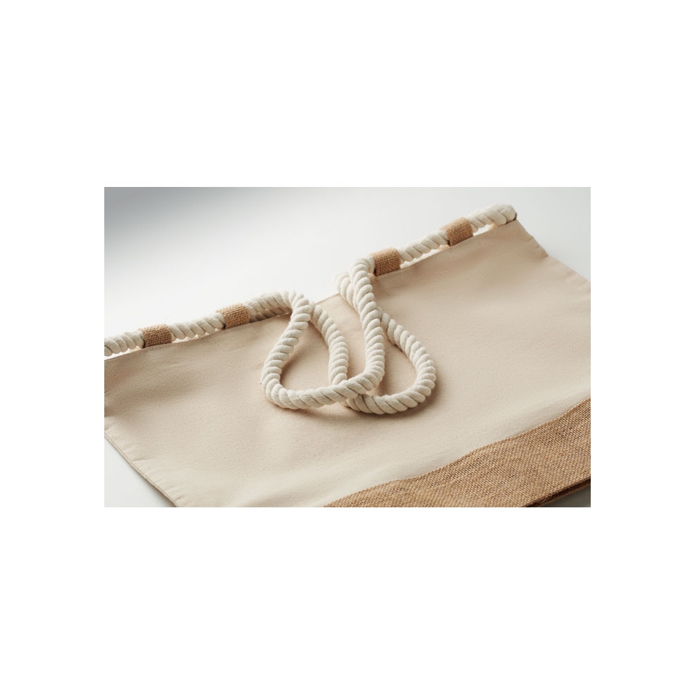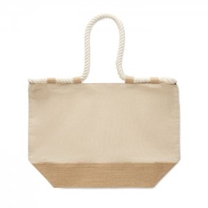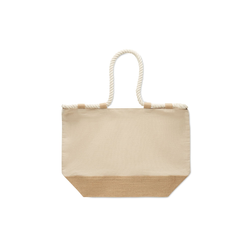 Artikel-Nr: OCBMO2805-13Strand- oder Einkaufstasche aus Canvas und Dekor aus Jute. Mit Kordelgriff, Reißverschluss und 10 Schlaufen aus Jute. 280 g / m².