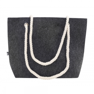 Artikel-Nr: AND800045-80Strand- oder Einkaufstasche aus RPET-Filz mit Baumwollkordelgriffen und Bodenfalte. Mit RPET-Label.