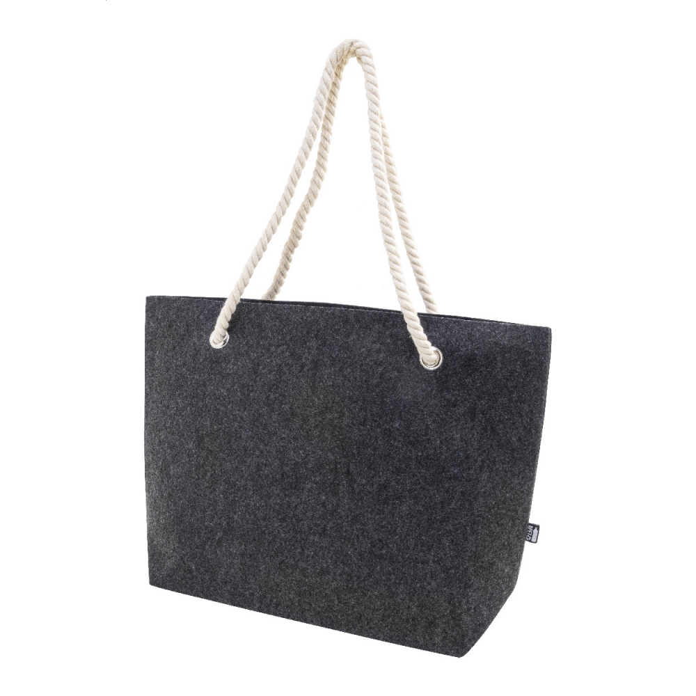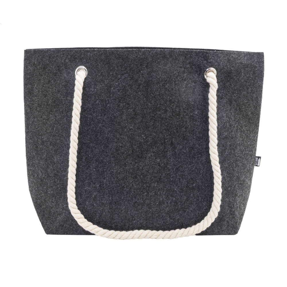 Artikel-Nr: AND800045-80Strand- oder Einkaufstasche aus RPET-Filz mit Baumwollkordelgriffen und Bodenfalte. Mit RPET-Label.