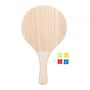 Artikel-Nr: AND800004Strandtennis aus Holz und ökologischem Weizenstrohkunststoff mit 2 Schlägern und einem Ball. Inklusive 3 Brettspielen, die auf den Schlägern gespielt werden können. Einzeln in Kordelzugbeutel aus Baumwolle.