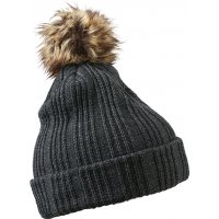 Strickmütze mit Krempe und Fake-Fur Pompon