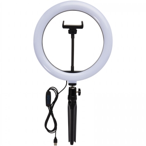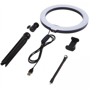 Artikel-Nr: CPO12424890LED-Ringlicht (23 cm) mit Stativständer und Telefonhalterung. Das ideale Gadget für jeden Fotografen / YouTuber / Vlogger / Content-Macher, der regelmäßig Streams oder Sendungen herstellt. Das Ringlicht leuchtet Ihr Gesicht gleichmäßig aus, ohne harte Schatten zu werfen. Die Lampe verfügt über 120 warmweiße LEDs, die in 10 verschiedenen Helligkeitsstufen eingestellt werden können, um das perfekte Licht zu erhalten. Lieferung in einer Avenue Geschenkbox.