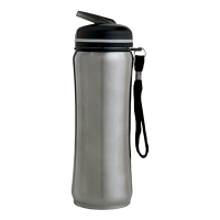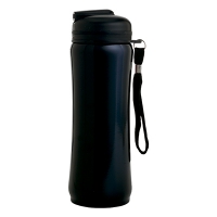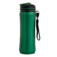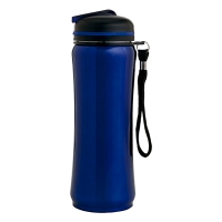 Edelstahl-Trinkflasche in kräftigen Metallic-Farben. Flip-and-Flow-Trinkhalm, Trageschlaufe.