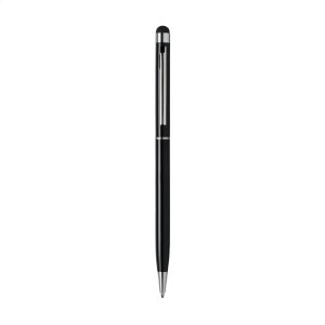 Artikel-Nr: CLP261666-001128Blauschreibender Metallkugelschreiber mit gummiertem Pointer zum Bedienen von Touchscreens (wie iPhone / iPad), hochglänzenden Akzenten und Dreh-Klicksystem.