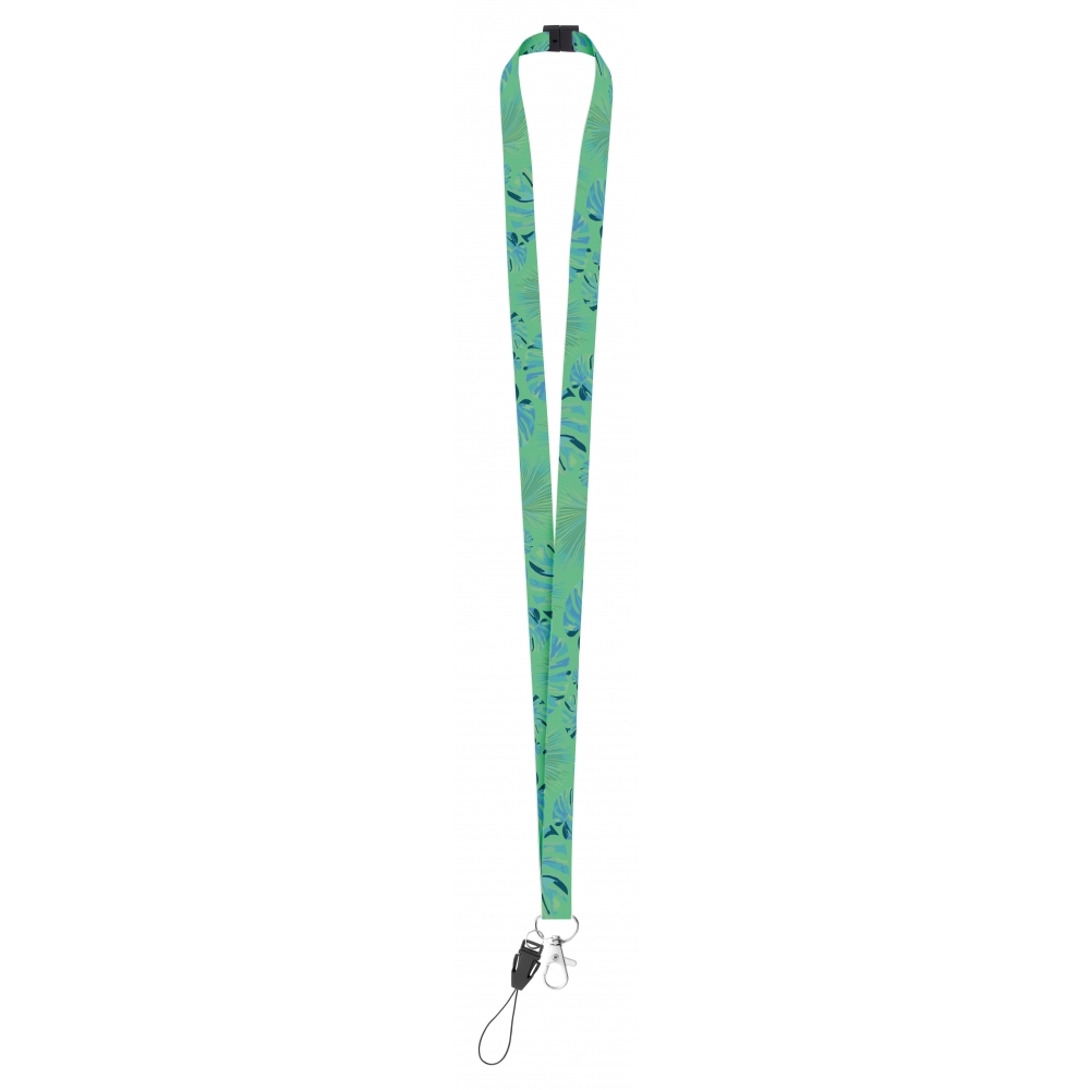 Artikel-Nr: AND718352Polyester-Lanyard, 15mm breit, mit Metall-Karabiner, Handyfaden, Panikverschluss und vollfarbiger Bedruckung. Der Preis ist inkl. Sublimationsdruck auf beiden Seiten. Mindestmenge: 100 Stk.
