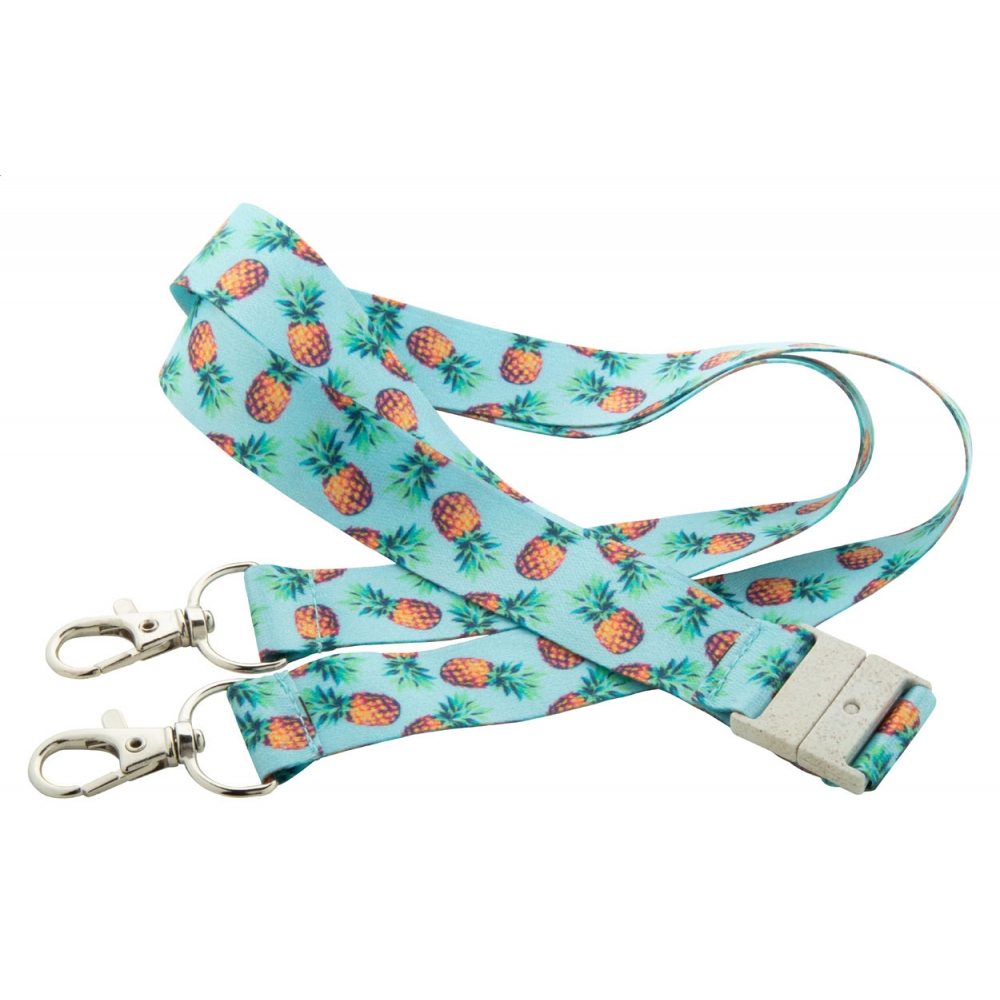 Artikel-Nr: AND718520Individuelles Lanyard aus RPET, mit 2 Metallkarabinern und Panikverschluss aus Weizenstrohkunststoff. Der Preis ist inkl. Sublimationsdruck auf beiden Seiten. Mindestmenge: 100 Stk.