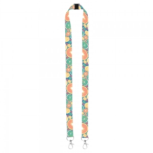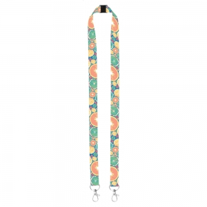 Artikel-Nr: AND718348Polyester-Lanyard mit zwei Metall-Karabinern, Panikverschluss und vollfarbiger Bedruckung. Der Preis ist inkl. Sublimationsdruck auf beiden Seiten. Mindestmenge: 100 Stk.