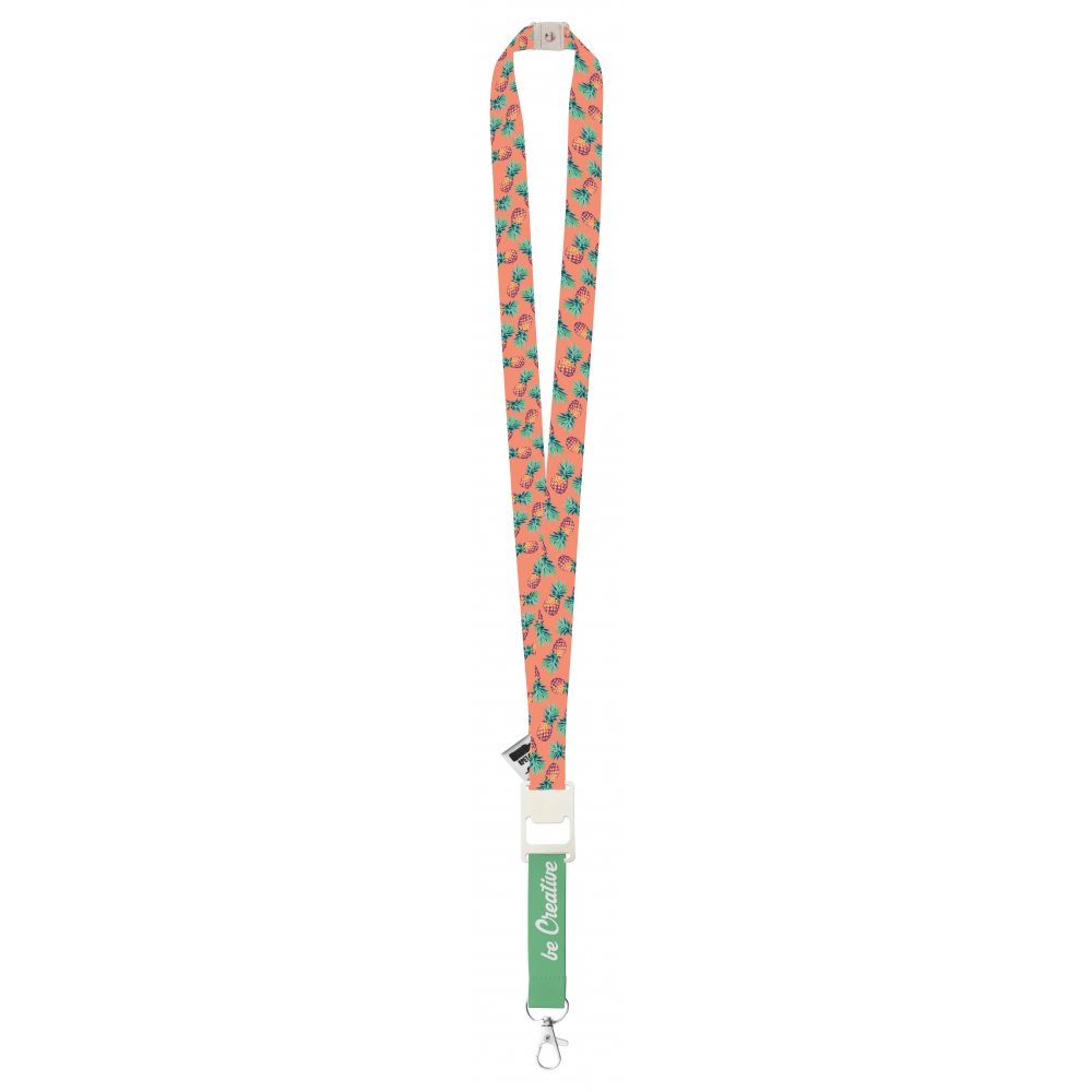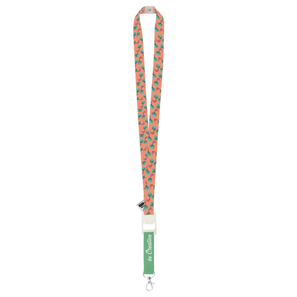 Artikel-Nr: AND718525Individuelles Lanyard aus RPET, mit Metallkarabiner, Flaschenöffner und Panikverschluss aus Weizenstrohkunststoff. Der Preis ist inkl. Sublimationsdruck auf beiden Seiten. Mindestmenge: 100 Stk.