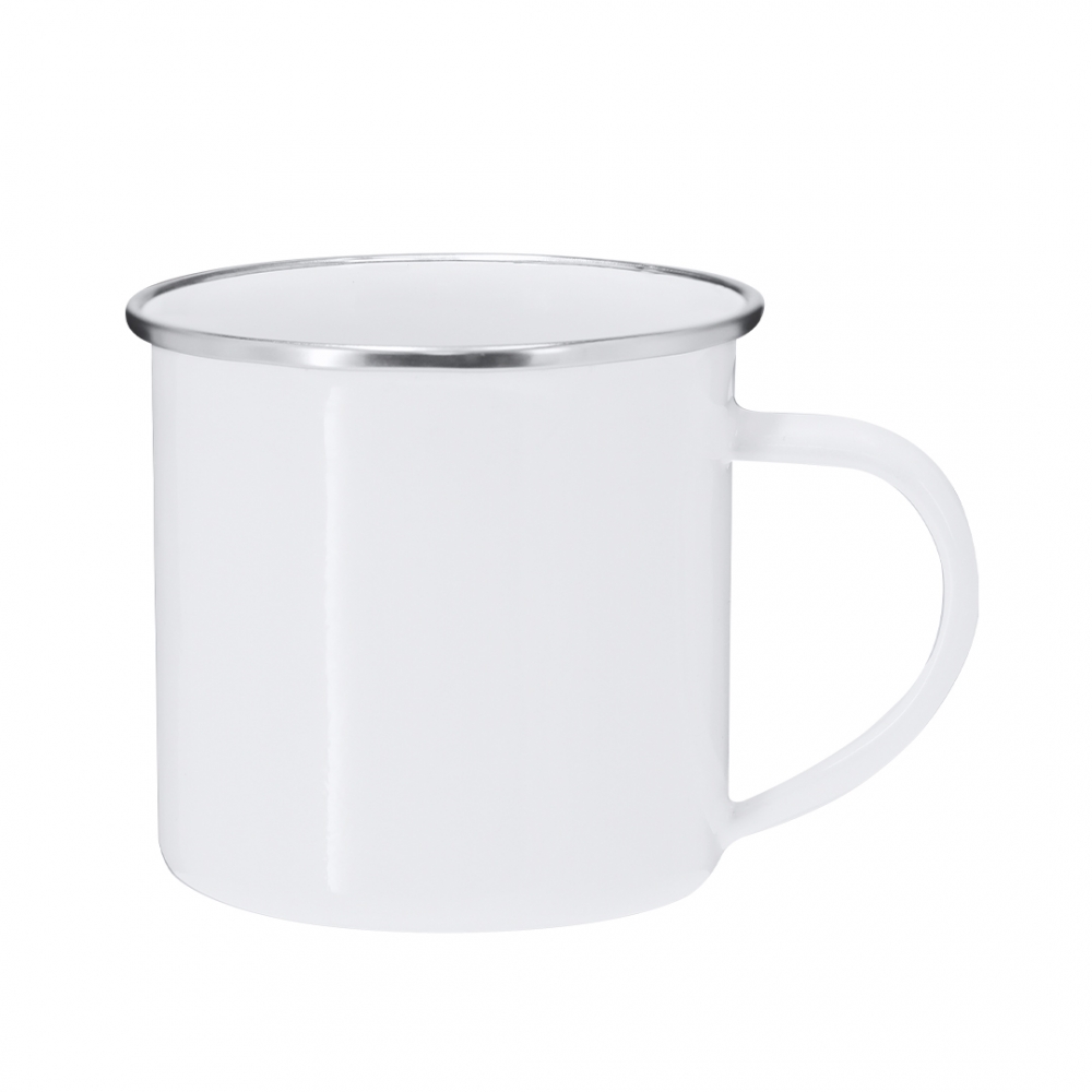 Artikel-Nr: KTO21716001000Metalltasse mit einem Fassungsvermögen von 200 ml im Vintage-Design und glänzend weißem Finish mit eleganten chromierten Details am Rand. Besonders für Sublimationsdruck entworfen.