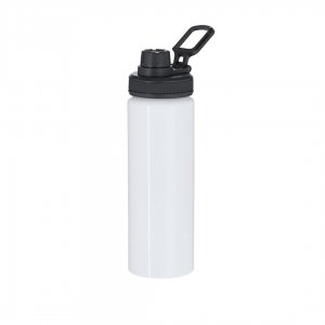 Artikel-Nr: KTO21715001000Aluminiumkanister mit einem Fassungsvermögen von 800 ml. In glänzendem Weiß, speziell entworfen für Sublimationsdruck. Enthält einen schwarzen Deckel mit Schraubverschluss, grau Silikon-Griff für optimale Versiegelung, Dosierer und verstellbaren Tragegriff. BPA-frei.