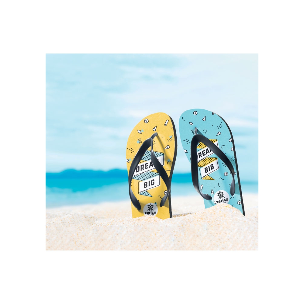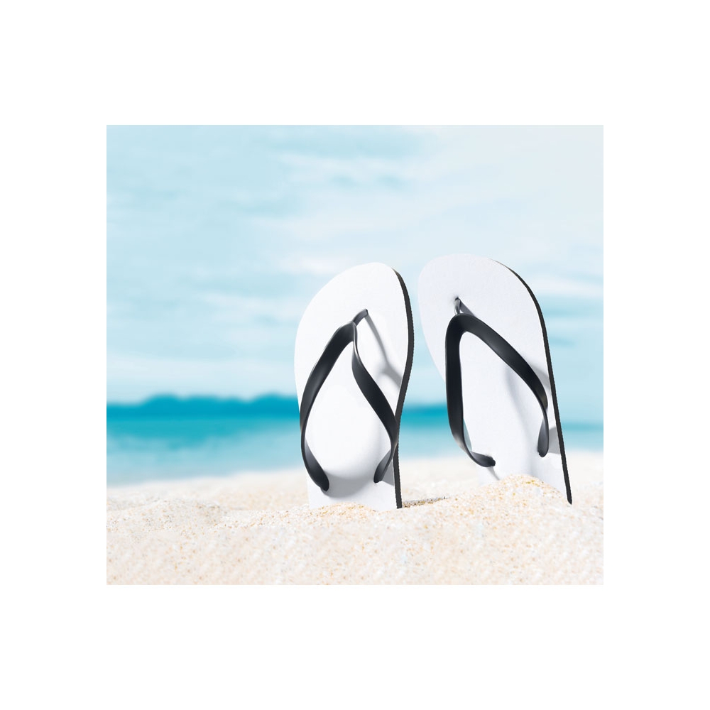 Artikel-Nr: OCBMO6238-03Sublimations-Zehensandalen mit Riemchen aus PVC. Sohle aus Gummi mit Bezug aus Polyester. Größe 44-46. Der Artikel kommt unmontiert. Der Artikel kann nur bedruckt bestellt werden.