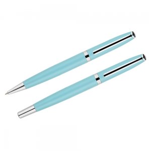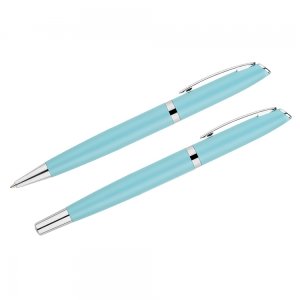 Das COLORADO-Schreibset besteht aus einem Kugelschreiber und einem Tintenroller in einer Pappschachtel verpackt, die farblich auf das Set abgestimmt ist. Schreibzubehör aus Metall, Etui aus starkem Karton mit farbigem Papier ausgeführt. Sein charakteristisches Merkmal sind saftige, modische Farben. Der Kugelschreiber verfügt über ein Twist-Mechanismus. Kugelschreibermine in blau.