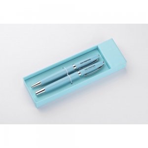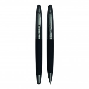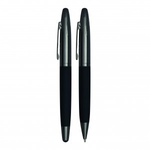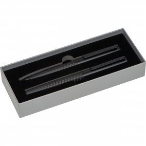 Aluminium-Schreibset, bestehend aus Kugelschreiber (blauschreibend) und Druckbleistift (0,7mm). Einzeln in schwarzer Geschenkbox.