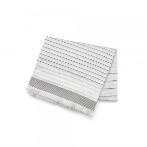 Ernst Decke aus 80 % recycelter Baumwolle (220 g / m²) und 20 % rPET. Mit ihrer Größe von 130 x 160 cm bietet sie weichen Komfort. Das horizontale Streifenmuster verleiht ihr eine moderne, elegante Note. Verpackt in einem biologisch abbaubaren Polybeutel. Hergestellt in Portugal.