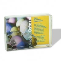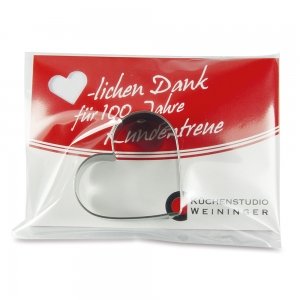 Artikel-Nr: HOP23.49627.01-kat"Backen ist Liebe!" Mit diesen Backförmchen aus Edelstahl (spülmaschinenfest) können Sie sich immer wieder eines der beliebten Symbole backen. Die Plätzchen lassen sich schön verzieren, was das Back-Erlebnis abrundet. Der individuell beidseitig bedruckbare Einleger unterstreicht Ihre Botschaft bei Bedarf mit einem kleinen, ausgestanzten Herz.