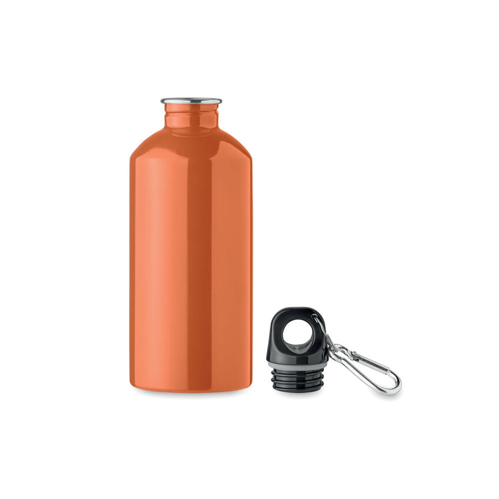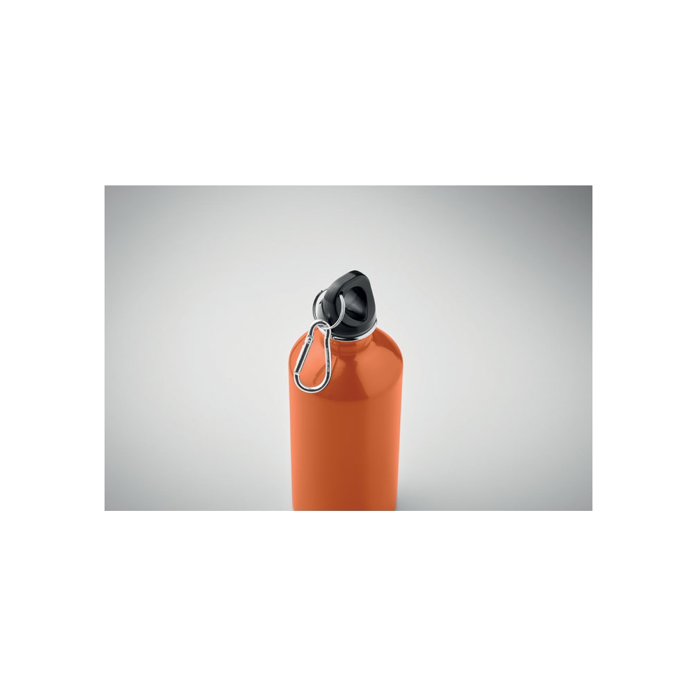 Einwandige Trinkflasche aus recyceltem Edelstahl (90 % recycelter Edelstahl und 10 % Edelstahl) mit Karabiner. Füllmenge: 500 ml. Sublimationsdruck nur auf weißem Material möglich. Auslaufsicher. Der Karabiner ist NICHT als Sicherung beim Klettern geeignet. Da der einwandige Becher die Hitze nach Außen leiten kann, kann der Artikel heiß werden.