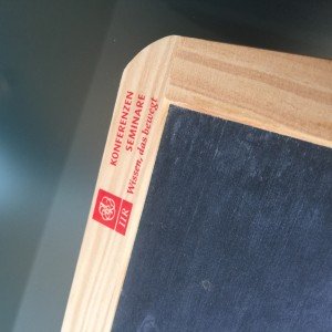 Mit dem Kreidegriffel ist die Tafel leicht zu beschriften und mittels feuchtem Schwämmchen auch schnell wieder zu reinigen.