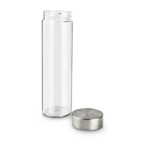 Puristisches und lineares Design, fest verschließender Schraubdeckel mit Dichtungsring, ideal für den Schreibtisch oder den Konferenzraum, temperatur- und spülmaschinenbeständiges Glas, 500 ml (Borosilikatglas, Edelstahl - seidenmatt gebürstet)