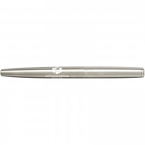 Ferraghini Schreibset bestehend aus einem Drehkugelschreiber mit blau schreibender Mine (600m Schreiblänge) und einem Füllfederhalter (inkl. blauer Patrone) aus Edelstahl. Ihre Werbung gravieren wir jeweils neben dem Clip auf beide Schreibgeräte.