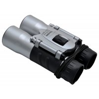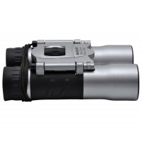 Fernglas 10 X 25 (10 fache Vergrößerung), Linsendurchmesser 25 mm). Linsen aus behandeltem Glas, leichtes Gehäuse aus sibergrauem PVC mit Kautschukinserts. Die ergonomische Form liegt gut in der Hand. Drehrad zur Regulierung, Sehstärkekorrektur. Zusammenklappbar, mit Halsband. Lieferung mit Gürteletui.