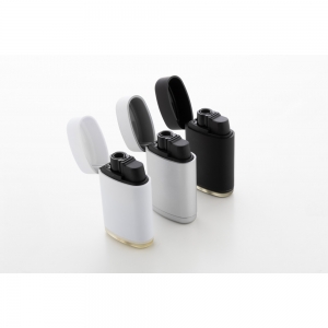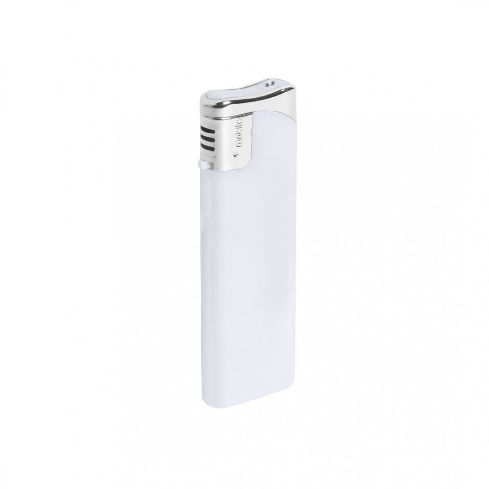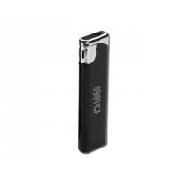 Ergonomisches Elektronik Feuerzeug nachfüllbar mit Soft Touch Haptik. Die Flamme lässt sich stufenlos verstellen. Der Werbeaufdruck wird im Digitaldruck (mehrfarbig) für Rechtshänder lesbar angebracht.