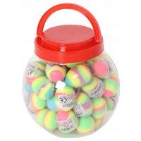 Kleiner, sprunggewaltiger Gummiball. Verschiedene Farben sortiert. Achtung! Nicht geeignet für Kinder unter 36 Monaten.